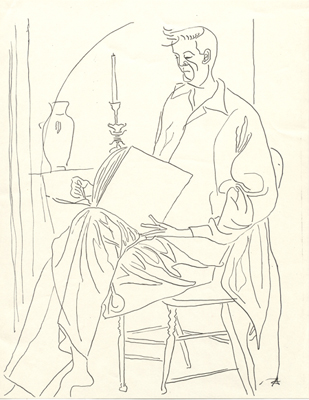 Herb Aach drew as a child and though primarily a painter, he continued to draw throughout his life. He recalled that his parents would give him pencil and paper as a child to keep him occupied and that he happily complied. Although he focused on abstracts as a painting, he drew both abstracts and figurative works. Towards the end of his life when he became too weak to paint, he concentrated on his drawing, often passing his time in hospitals by drawing flowers given him by friends or other hospital scenes.